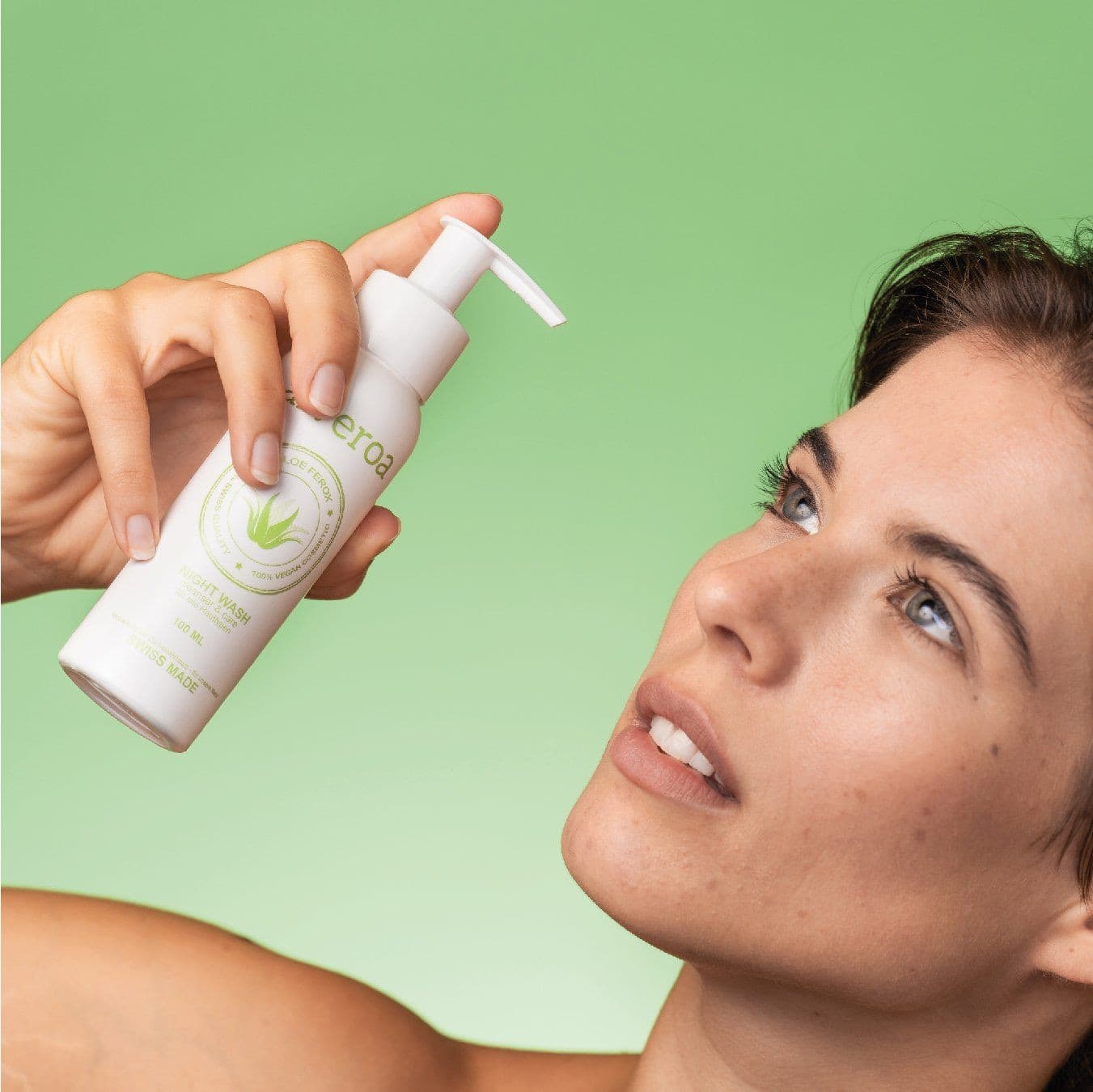 Reinige und pflege dein Gesicht mit dem Wash, bevor du ins Bett gehst. Wasche dein Gesicht mit lauwarmem Wasser und einem Pumpstoss des Washs gründlich. Massiere das Wash mit kreisenden Bewegungen ein, bis sich ein sanfter Schaum bildet. Spüle dein Gesichts anschliessend mit Wasser und tupfe es mit einem Handtuch trocken.